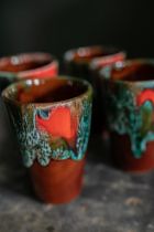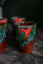 Kitch peut-être. Il est vrai que ces céramiques ne font pas forcément consensus. Mais qu'importe ! On a craqué pour ses 4 gobelets bruns aux motifs 'lave' verts, turquoise et aux touches orange.